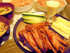 手ベタベタ Bbqチキンウイング お料理ダイスキ ニューヨークおうち