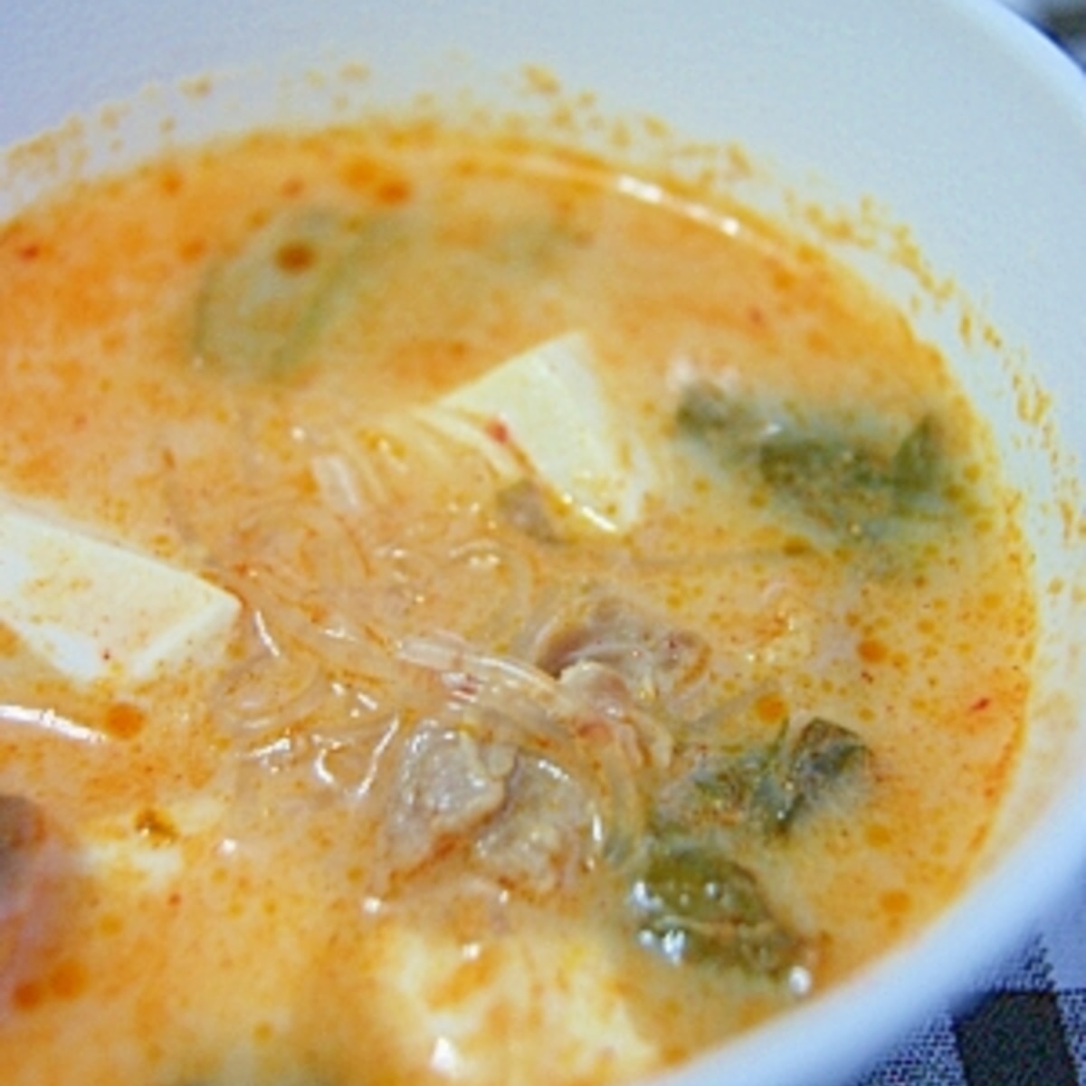 白菜と春雨の坦々スープのレシピ 作り方 ピリ辛クリーミーで食べ応え